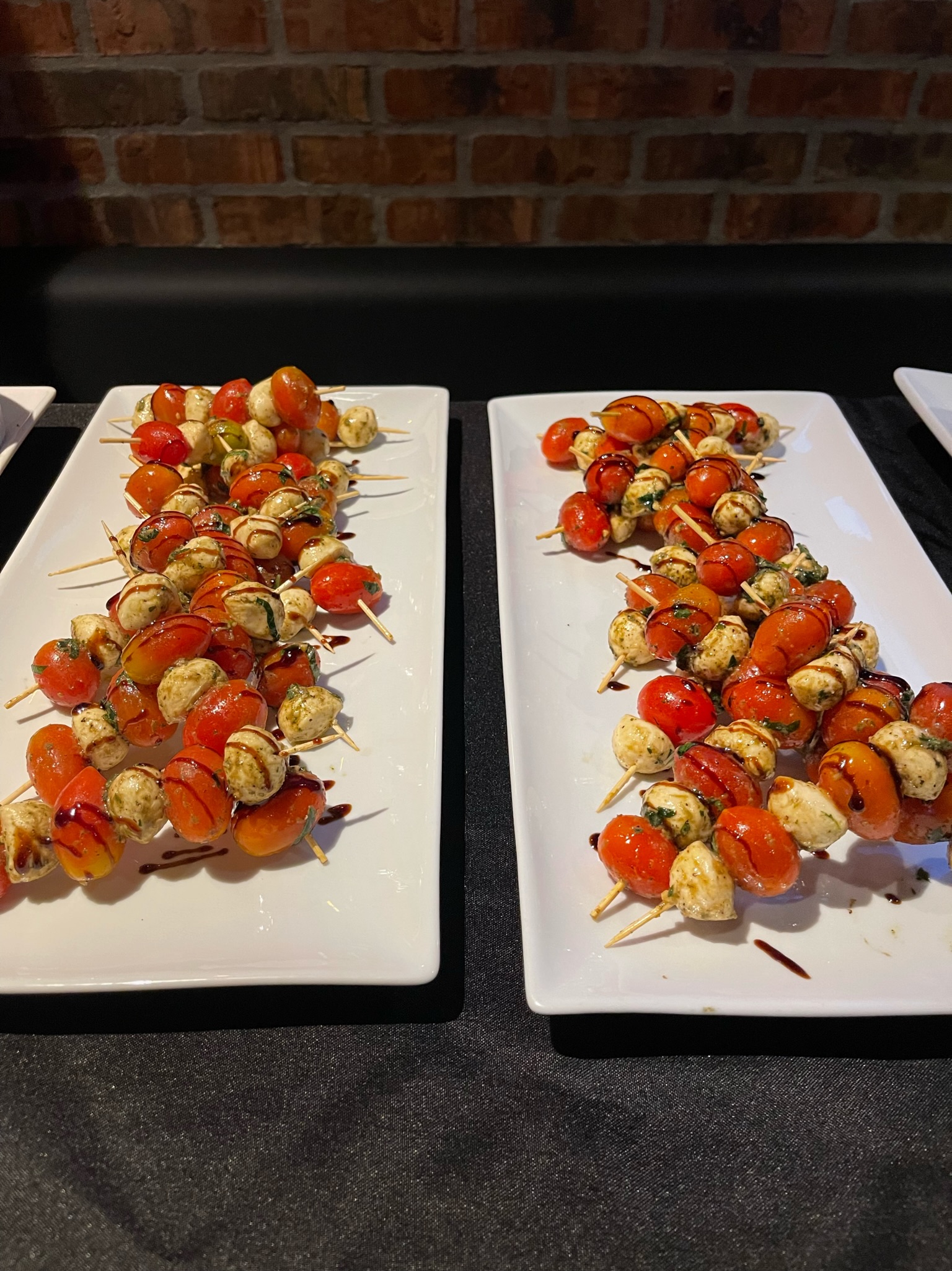 Grape tomatoes, bocconcini cheese, basil pesto, balsamic reduction.